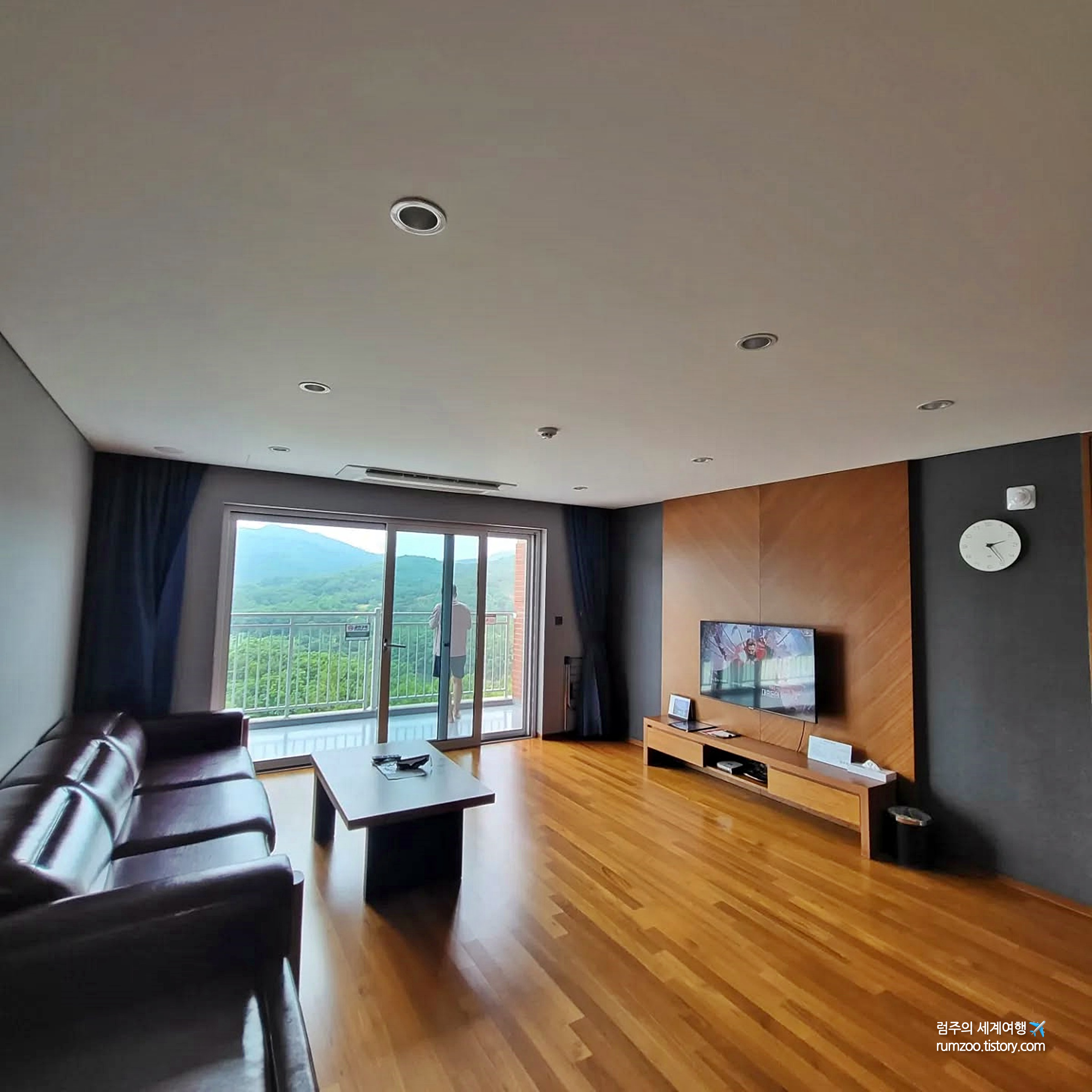 저희는 운 좋게 35평형 콘도 예약에 성공하여 다녀왔는데요, 체크인은 웰컴센터에서 진행되며 카드키 대신 비밀번호가 휴대폰으로 전송되는 방식이라 깔끔하고 간편했습니다.