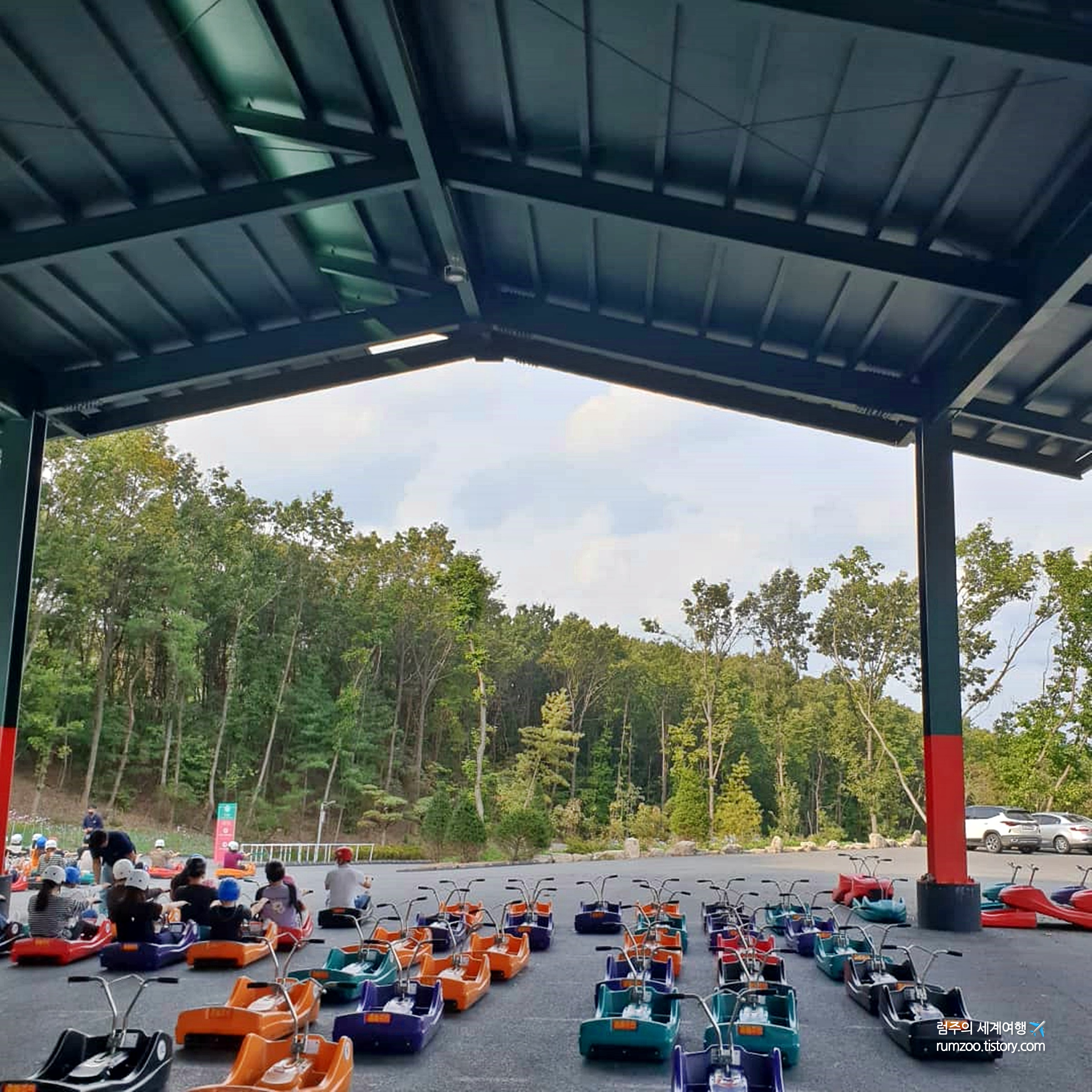 놀이동산은 셔틀버스를 타고 이동해야 하며, 아이들이 즐기기 좋은 소형 놀이기구들로 구성되어 있습니다.