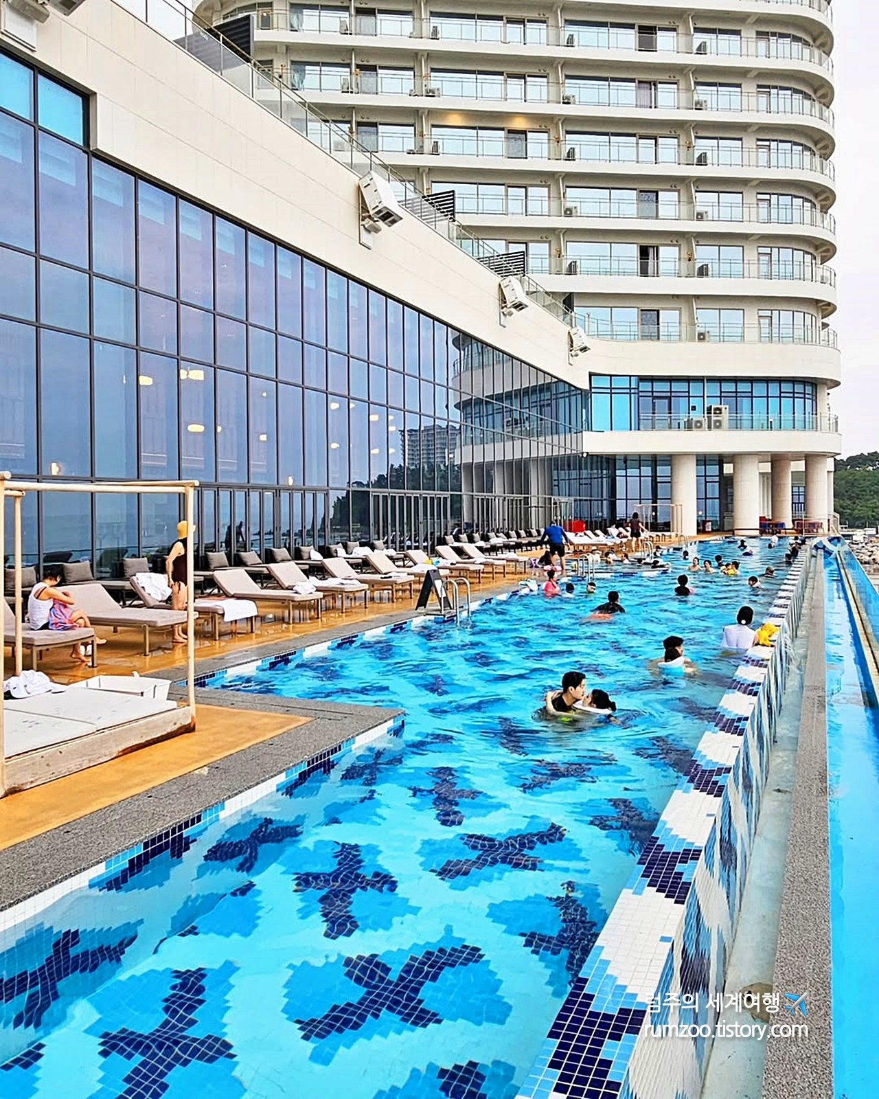 속초 바다를 보며 수영을 즐길 수 있는 인피니티 풀은 이 호텔의 핵심 포인트예요. 뷰도 좋고 분위기도 좋아요.